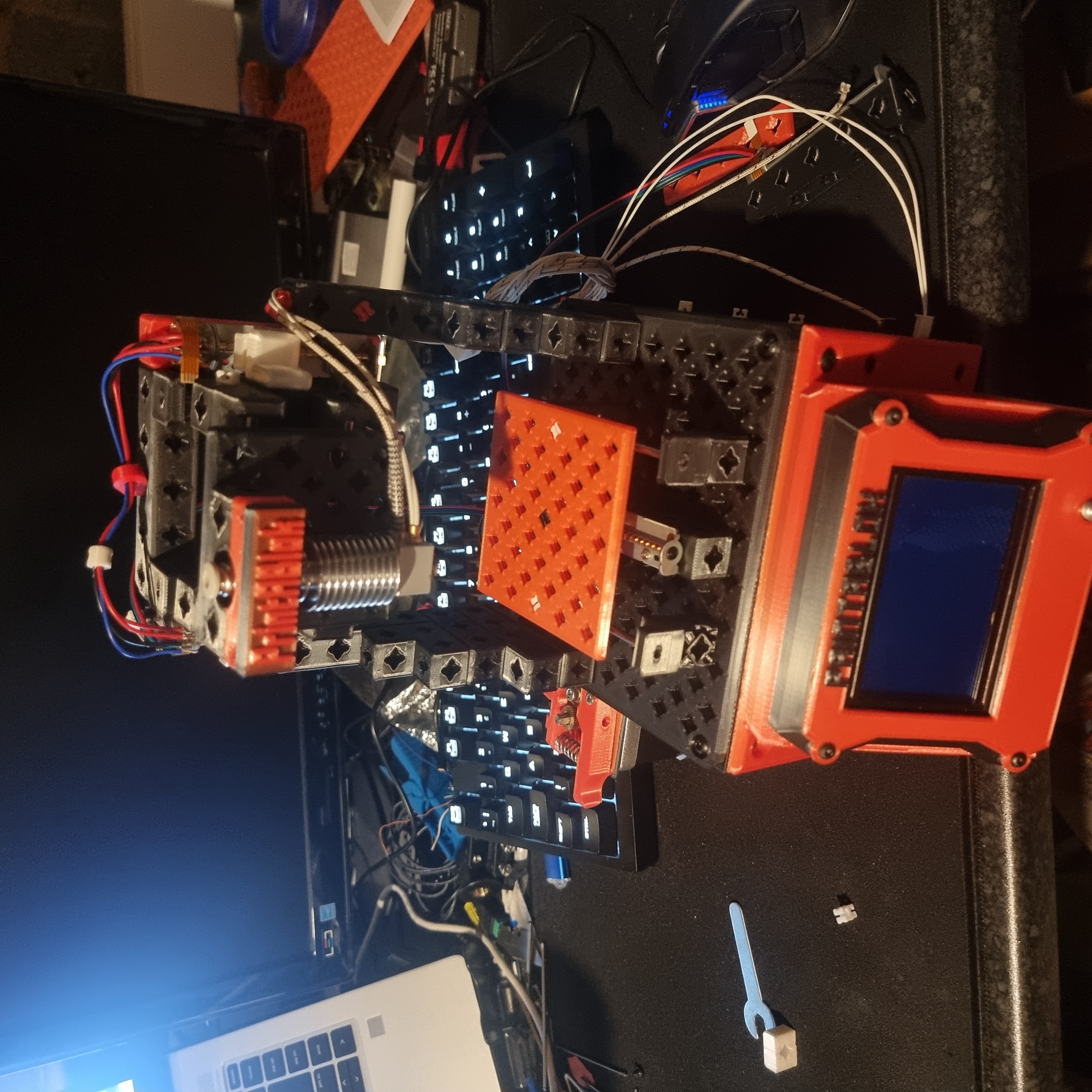 I’ve gone through a minimum of two iterations here, one based around the v6 from E3D and the other around the cr10/mk8 style from Creality. Ultimately after fighting with wobble I’ve opted for a creality style